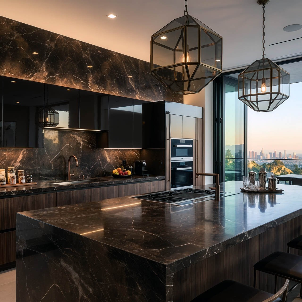 - Wood: To combine the warmth of timber with the luxury of stone in furniture and cabinetry.